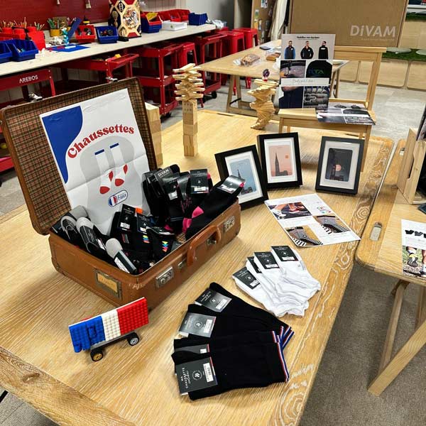 Avant de démarrer, les étudiants ont assisté à une présentation complète de l’entreprise Divam : ses valeurs, ses produits (plaids, torchons, chaussettes, serviettes de bain, etc.), et les étapes de commande et de vente. Un carton contenant des mallettes d’échantillons (mini-plaid, torchons, essuie-mains, chaussettes) leur a été distribué, ainsi que des catalogues et des bons de commande pour faciliter leur démarche.