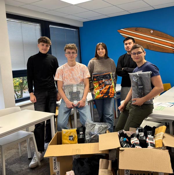 Ils ont d’ailleurs de leur propre initiative convié les autres étudiants de l’école à une réunion conviviale sur le Kampus avec boissons et gourmandises. Le but ? Inciter leurs pairs à choisir les produits Divam pour leurs cadeaux pour Noël.