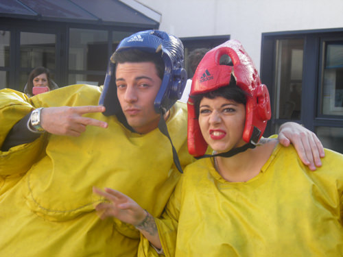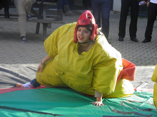 En effet, après avoir revêtu leur tenue de sumo, les étudiants ainsi que certains courageux professeurs se sont livrés à des "combats" qui ont provoqué le rire de bien des spectateurs !