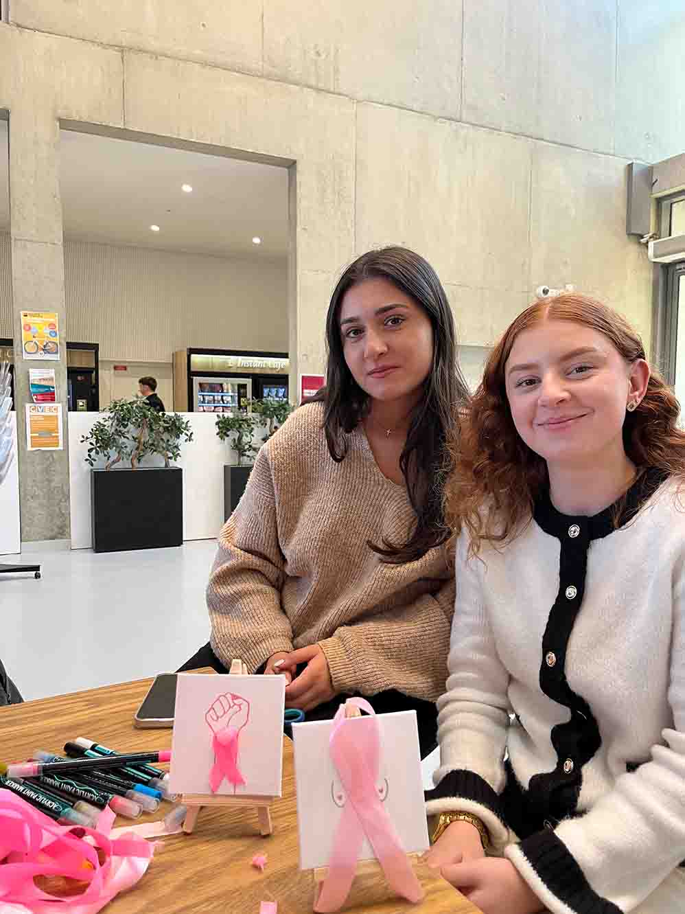 Dans le cadre d’Octobre Rose, les étudiants ont participé à des ateliers créatifs comme la customisation de tote bags ou la fabrication de bracelets, et une journée spéciale a été organisée pour soutenir la lutte contre le cancer du sein.